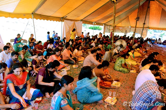 Around 3 pm, more than 100 families participated in the community sai vrat. Sai vrat is similar to satyanarayan vrat where the 9 governing planets, ashta dikpalakas (rulers of the 8 corners), and the five presiding deities are invoked along with Lord Sainath. As an added feature this year, the 52 week sainath paduka puja was also performed.