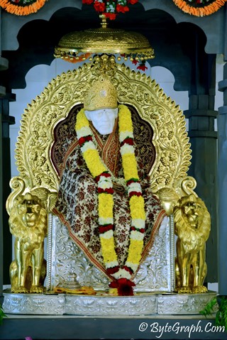 (Left) The larger than life statue of Shirdi Sai Baba.
