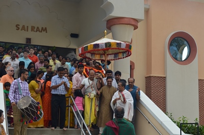 While the main sanctum was being decorated as a replica of the Guru Sthan in Shirdi, India (which represents the place under the neem tree where Saibaba meditated), singers engaged the audience with uplifting bhajans.