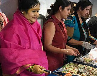 On Wednesday, May 3, 2017, Karunamayi Amma along with members of the Sikh Study Circle were volunteering at Metro Atlanta Task Force for the Homeless in downtown Atlanta, serving a vegetarian dinner to homeless men: vegetarian biryani, pasta, salad, bread, banana, a cookie, and water were offered. In the background Amma’s CD Maha Mritunjaya Mantra was playing. Chanting mantra while cooking and serving creates a positive vibration. Food thus cooked and served helps those who eat receive positive energy, which helps strengthen mental energy. Guru Nanak’s teachings also emphasizes this: Jo Chakay Tera Naam Japay, those who eat food that is seeped with prayers draw closer to God.