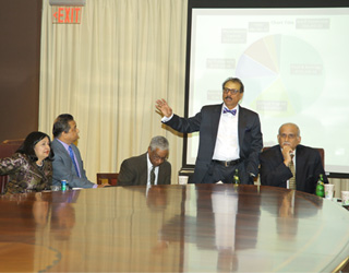 (Right) Dr. Sudhakar Jonnalagadda presents stats and possibilities.