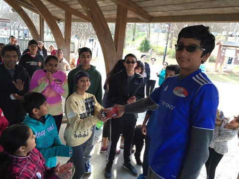 The large Indian community in Marietta gathered at the neighborhood park, ready to run, eat, and mingle. Along with the run, the kids had organized a bake sale of samosas and veggie puffs, cookies and brownies. They also had wonderful pottery and jewelry for sale. The kids had approached many businesses and five had sponsored the event. With a total of 128 people (72 adults and 56 kids), $3000 was raised, making this a grand success according to the kids.
