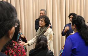 (Left) Tabla maestro Zakir Hussain greeting his ardent fans after his concert. (Photo: Courtesy KSU)