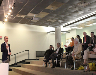 (Left) Professor Jan Nijman, founding member of GSU’s Urban Studies Institute, speaking about Mumbai. (Photo: Courtesy KSU)