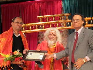 Lifetime Achievement Award for Dr. Nori at Atlanta’s Datta Jayanti with Viswayogi Viswamjee, & Nandi statue