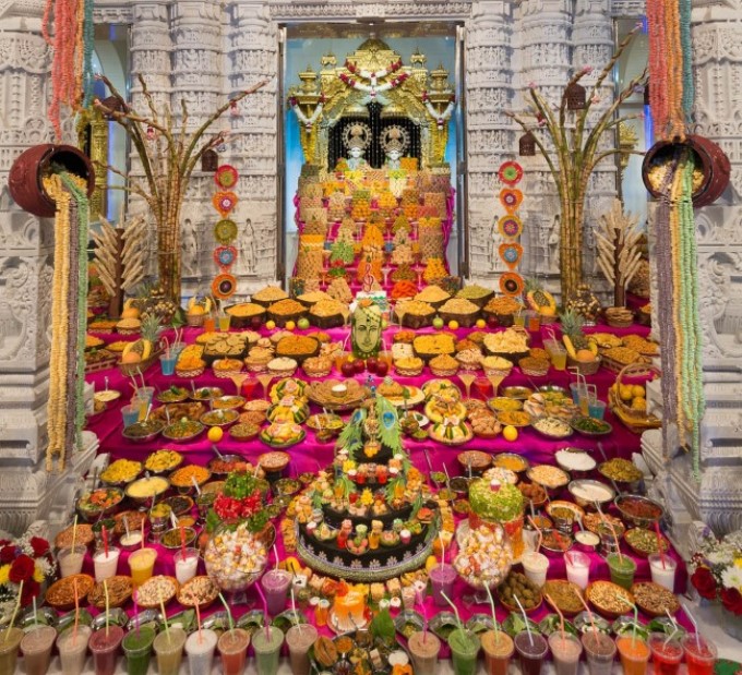 Volunteers helped with the grand annakut on New Year’s Day, October 23, to offer the first harvest to the murtis of God. This conveyed a sentiment of gratitude towards God because He is the giver of all fruits. Throughout the day, people observed the annakut in admiration as they conversed about their favorite dish.