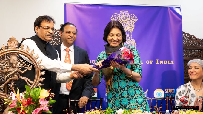 Previously, on March 6, Mallika, Samia, and the team were felicitated at the Consulate of India in Atlanta. Although Consul General Kulkarni was called to India for family matters, Consul Shailesh Lakhtakia made the team’s introductions with a good sense of humor. Mallika Sarabhai eloquently spoke about her motivation for challenging the norm and inspiring change in the outdated social traditions to bring about gender equality. With equal humor she retorted to the remarks made by Lakhtakia. The healthy sparring of words regaled the guests, who were later treated to delicious refreshments catered by Madras Chettinaad and Madras Mantra cuisines.