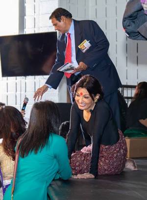 The gracious Mallika interacting with the audience after the performance. (Photo: Magic Dust Photography) |