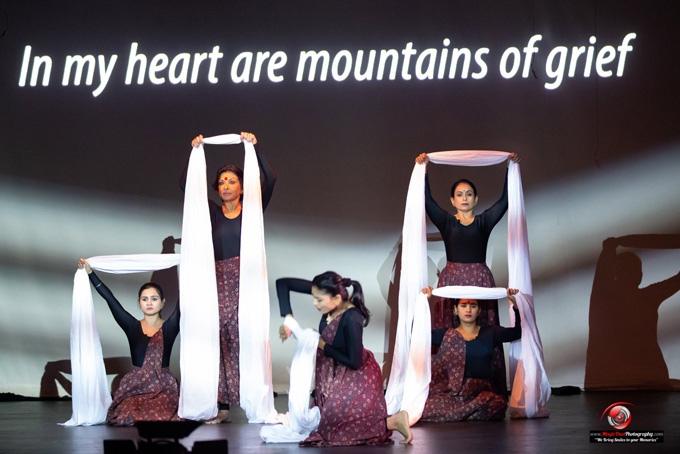 The dance program followed, with Mallika Sarabhai’s concept, choreography, costumes, and direction reflecting her passion for social change and women empowerment. The haunting Urdu-English lyrics of British musician Samia Malik were powerfully delivered, along with striking imagery and story creating skills of Yadavan Chandran to create a scintillating six-woman show. Along with Mallika, dancers Surbhi, Mehraj, Sonal, and Pooja electrified the stage and lit fire in the minds of the audience with their touching true stories given in songs and dances that brought new insights and awareness about real issues facing men and women today, for ways of working together towards a better future of gender equality.