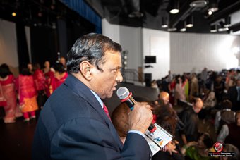 Organizers and guests of honor: Professor and Mrs. Sheth, Paddy Sharma, Alicia Philipp, Consul Nadia Theodore, Manoj Bharat, Pravin Patel; Mustafa Ajmeri had stepped away. (Photo: Magic Dust Photography) |