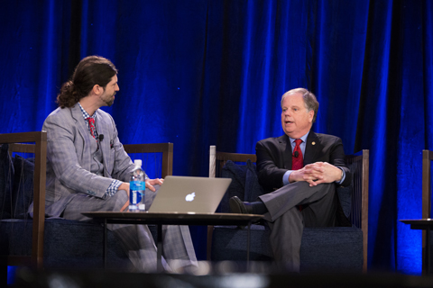 (Left) A fireside chat featuring United States Sen. Doug Jones (D-AL) during lunch on Friday, with Anil Mujumdar (left).