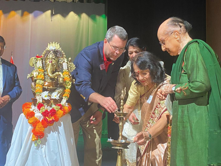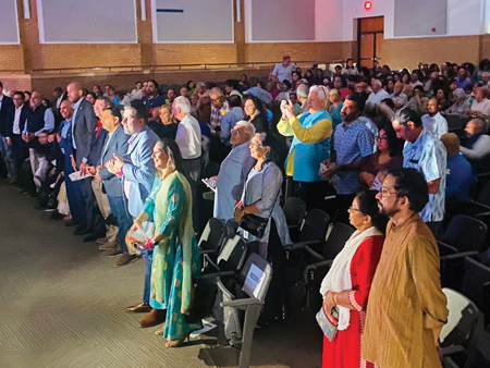 The evening continued with a live concert by the very talented versatile singer, Garima Khiste and her band, who mesmerized the audience with Bollywood and regional hits, both old and new, over a standing ovation into the wee hours of midnight at the Berkmar Arts & Performing Center. Light dinner and refreshments were sponsored by Narendra Patel of Madras Chettinaad/Mantra.