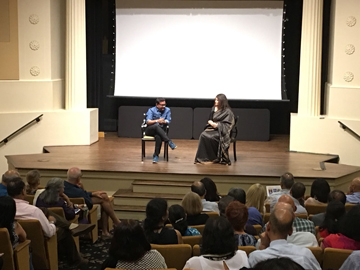 GIACC volunteer and Artistic Director of AIFF 2018 Suneeta Mishra interviewing producer of the film Nude, Ravi Jhadav. (Photo: Vinod Devlia) |