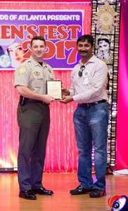 (Left) Forsyth County Sheriff Ron Freeman was felicitated by IFA Founding Member Kiran Gogeneni. (Photo: Vakiti Creations)