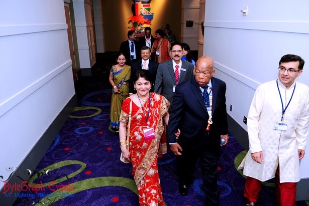 Madhu Sheth escorting Congressman John Lewis to the podium