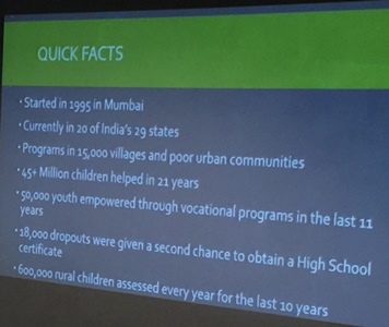 Besides serving children, Pratham also teaches vocational and technological skills for post-primary aged youth, and new ways to measure child enrollment and progress. This measuring method consists of 10 years of hard data from Pratham volunteers to assess children’s basic arithmetic and reading levels. Pratham compiles the testing data into a report called ASER, the Annual Status of Education Report (aser also means “impact” in Hindi), now in its twelfth year. The report has become a changing force in moving India’s education reform past compulsory school attendance to actual learning and teaching of skills. “It is an exciting time to be part of a growing organization that is leading the way to make sure every child in India gets educated,” Thapliyal said.