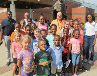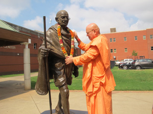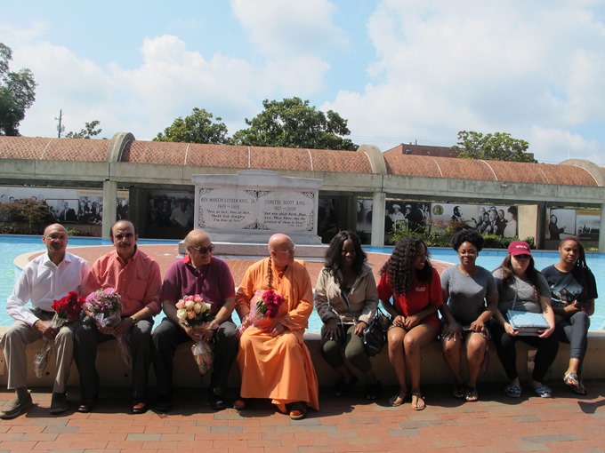Swamiji interacted with chidren at the Gandhi statue at the Dr. Martin Luther King Jr. historical site. |