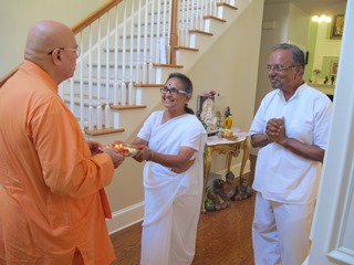 (Left) Pujya Swami Adhyatmananda arrives at Gita and Dr. G. V. Raghu's house.