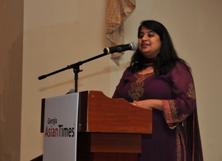 Aparna Bhattacharyya accepts Georgia Asian Times award on July 18, 2013. (Photos: Ben Hioe, Georgia Asian Times)