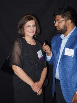 Honoree Dr. Gulshan Harjee being interviewed by Mustafa Abubaker. (Photo: Randmc Photography)