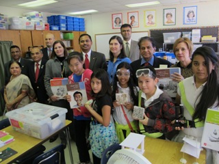 Dedication ceremony for science kits given to Cary Reynolds Elementary School: another of the Rotary projects, with students, teachers, and Rotarians of Rotary district 6900 and RCEDH present. (Photo courtesy of Ravi Ponangi)