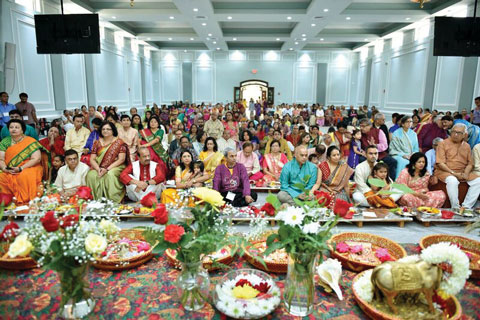 A tent with five havan kunds was set up on the east side of the complex where Laxmi/ Ganapati/ Vaastu/ Navagraha Homam were performed. The tent reverberated with chantings of Vedic hymns and mantras. The havan concluded with an aarti by over 600 devotees. Delicious mahaprasad was enjoyed by all.