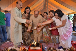 | Devotees doing havan. | The proposed new Sanatan Mandir. |