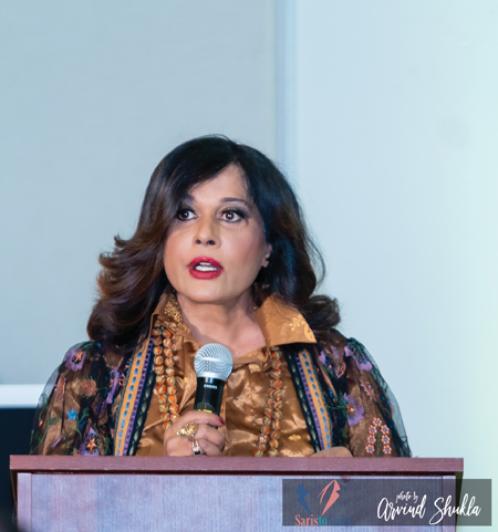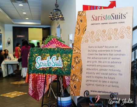 [Right] Patti Tripathi, founder of Saris to Suits, speaks about her initiative.