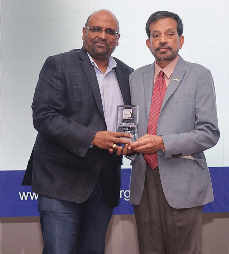 [Right] Ravi Ponangi being felicitated with the Sewa Abhigyan Award by Sri Gopal Koratana at the event.