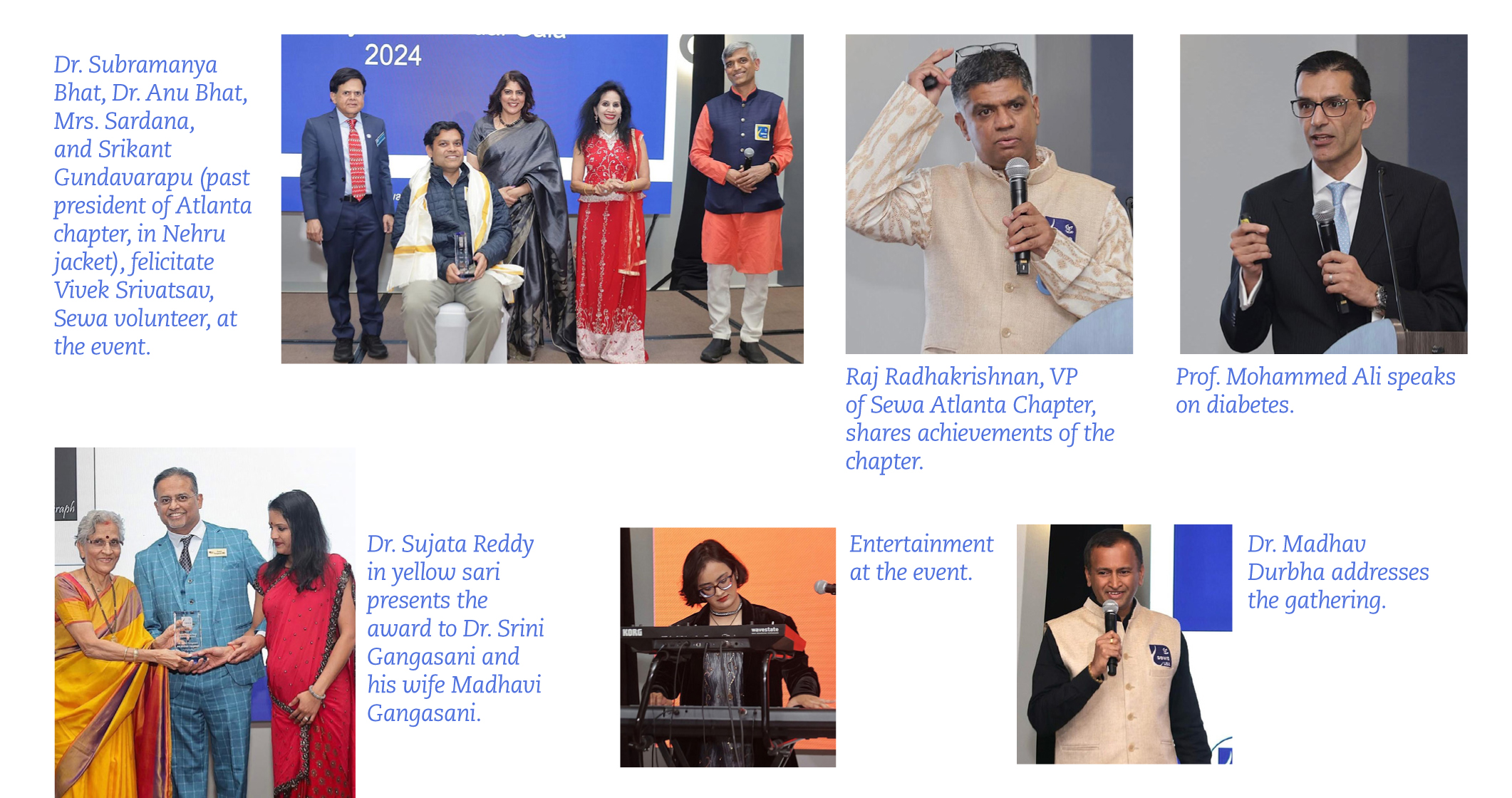 Dr. Madhav Durbha, President, and Raj Radhakrishnan, Vice President of the Atlanta Chapter, began the program by highlighting key accomplishments, including the expansion of the Sewa AmeriCorps Afterschool Tutoring Program, which supports underserved children academically. They also emphasized the success of free health clinics providing essential care and food security initiatives addressing hunger through meal distributions. This year’s Gala celebrated Atlanta’s growth, reach, and impact across these vital community programs.