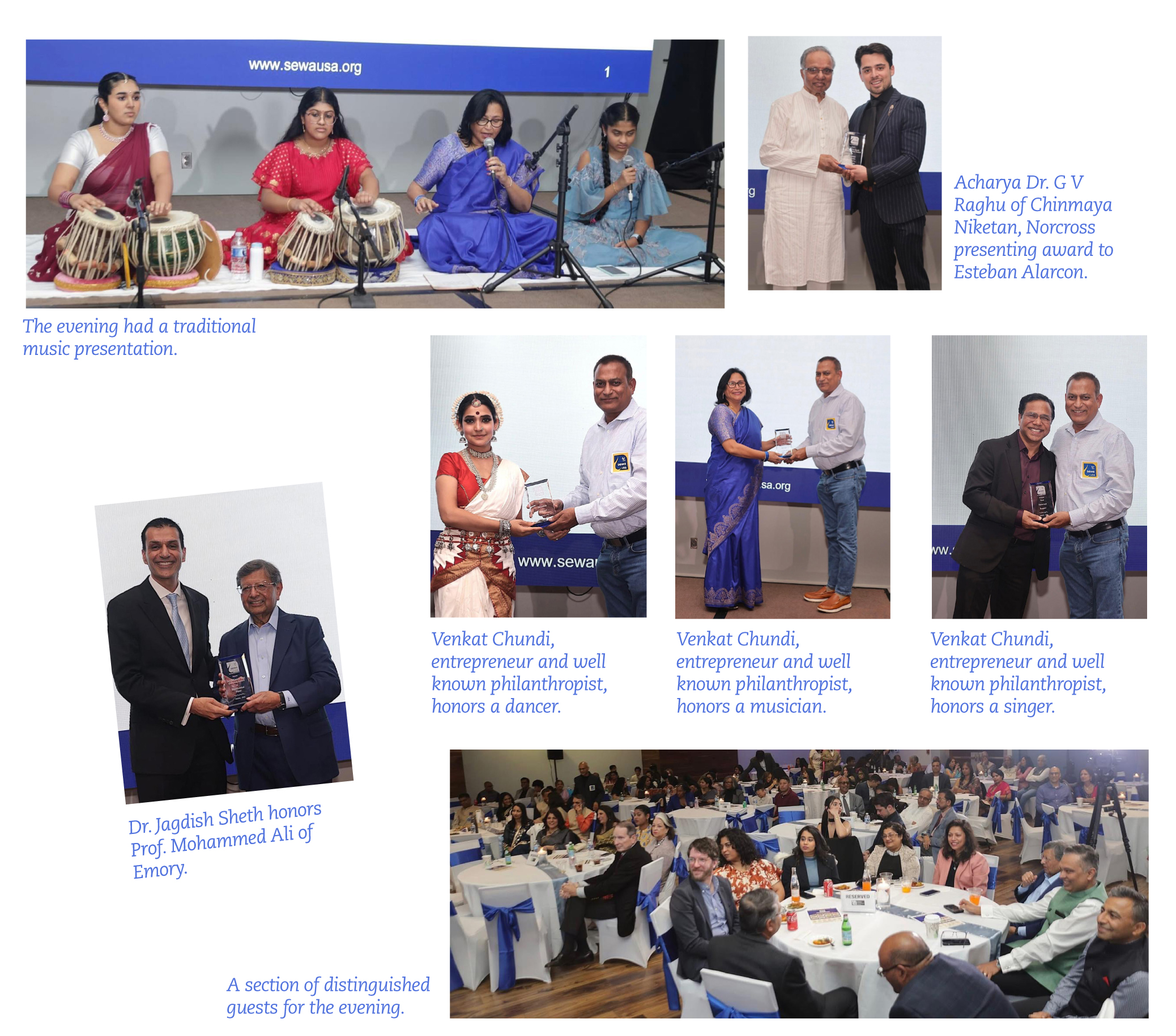 Sewa Atlanta honored volunteers and organizations vital to Sewa’s mission with awards, including Sophie and Sid Mookerji of the Mookerji Foundation, Dr. Paul Lopez, Esteban Alarcon, Dr. Sreeni and Madhavi Gangasani, Ravi Ponangi, and Bhikubhai Patel. Vivek Srivatsav was also recognized for his dedication and leadership in community initiatives.