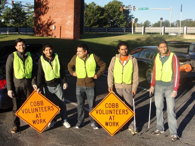 Sewa Day 2014: Atlanta volunteers clean a road in Cobb County