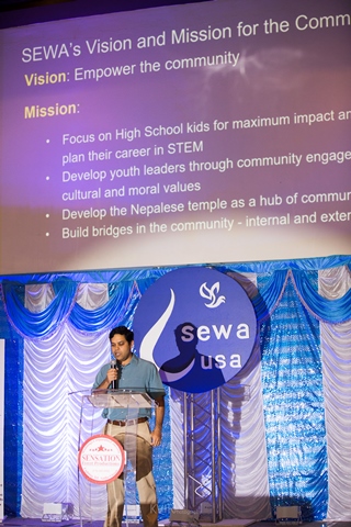 (Left) Volunteer Vivek Srivastva presenting Sewa's accomplishments in 2016.