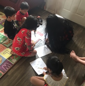 An intern with kids during one of the days of tutoring.