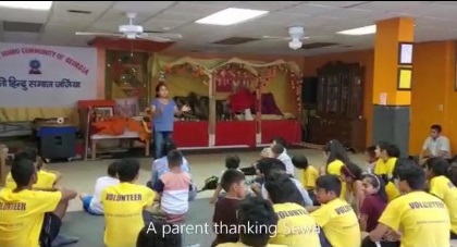 A parent thanking Sewa during the closing ceremony.
