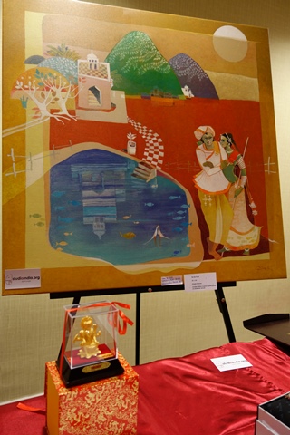 Auction items included superb paintings by Dinesh Sharma of StudioIndia.org and glittering sarees from Bawree (Photo: Suzanne Sen) |