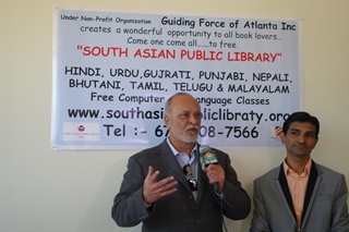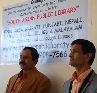 (Left) Dr. Saibaba Arcot and Ramzan Virani introduce the concept of the South Asian Public Library and its programs.