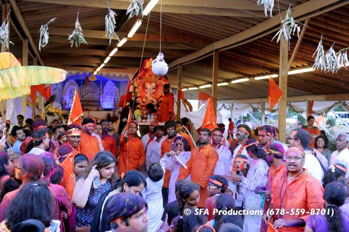 The Hindu Temple of Atlanta in Riverdale, Georgia, (HTA) organized a spectacular Ganesh Utsav celebration from September 3 to 11, 2016, which attracted hundreds of devotees from Atlanta and places as far as Arizona, Pennsylvania, and Florida. A majestic ten-foot Ganapathi idol was again specially made in Hyderabad for HTA and installed in the specially built canopy in the forecourt of the Shiva temple.