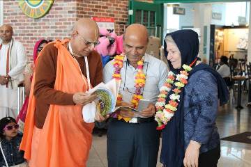 Shrila Maharaj held kirtans at the airport before departing from Atlanta to continue his preaching mission in Europe. Many travelers at the airport were very much attracted to the kirtan. They met Shrila Maharaj, spoke to him in person, had photo sessions and received his blessings.