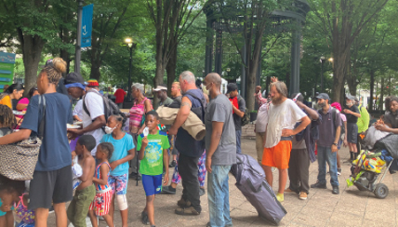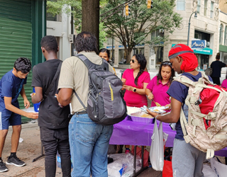 [Left] Volunteers came together to provide food to the homeless at Woodruff Park.