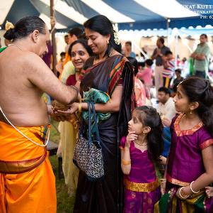 “Alpharetta and all the devotees who attended the event are really blessed to witness this celestial wedding.” This was the feeling as more than 3000 people participated in the Sri Sita Rama Kalyanam organized by The Hanuman Mandir on the most auspicious day of Sri Rama Navami. Festival celebrations started on New Year’s Day, Ugadhi or Gudi Padwa, March 31, 2014 and went on for nine days (Vasantha Navarathri) culminating in the grand Kalyanothsavam on April 8. Each of these days was observed with a specific homam (Sri Rama Naama, Manyu Sukta, Garuda, Hayagriva, Lakshmi Narayana, Sudarsana, Maha Sudarsana Narasimha, Narasimha), ishti and paarayanam. The temple head priest Sri Srimannarayana Swami and Sriman Laxman Swami worked to make this festival a truly divine experience for the entire congregation. The last four days of the festival witnessed special events where students and teachers from several traditional dance schools performed, much to the delight of hundreds of devotees. Carnatic musicians and bhajan groups from around North Atlanta also sang for the pleasure of their dearest lordships. Pallaki uthsavam (palanquin procession) was celebrated in the premises of the temple on Sunday April 6. Hundreds participated, singing the glories of Lord Rama and Mother Sita, and danced in ecstasy where Lord Rama was carried on the palanquin. It looked as if Sri Rama had come to Alpharetta from Ayodhya to bless his devotees.