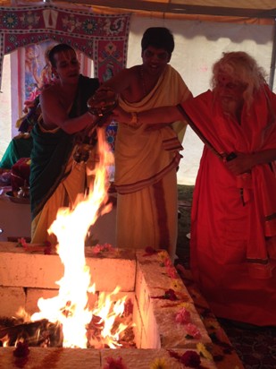 Sri Viswayogi Viswamjee Foundation for Universal Integration and Peace organized a ritual-studded MahaLakshmi Homam at the Hindu Temple of Atlanta, Riverdale, Georgia on Sunday, October 27, 2013. His Holiness Sri Viswamjee Maharaj, on tour in the US, participated in the homam and gave an uplifting spiritual discourse later.