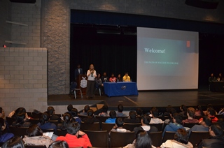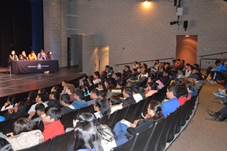 Organizer Anish Bikmal; Mrs. Laura Wilson, principal of SFHS, keynote speaker; and some panel members.