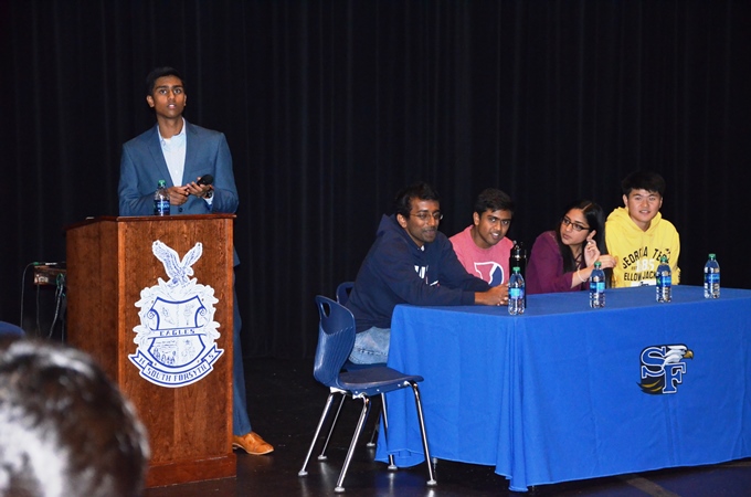 Anish Bikmal, a sophomore at South Forsyth, spent his break during Christmas organizing this event. His main goal was to help students in Georgia make informed decisions while applying to colleges. Anish said, “It is hard to find information about top colleges in one place, and hearing from current students in top colleges all in one place is next to impossible. My brother Anirudh Bikmal talked to his friends and they immediately agreed to this program. Mrs. Wilson was very encouraging and helped us with organizing this event in SFHS. Standing to our academy’s mission, we are always thinking about creative ways to motivate and inspire students. In response to the astounding feedback from the audience, we are planning on hosting a similar session during the summer of 2017, and a “Transition to High School” seminar is planned for March. Visit us at www.mieduacademy.weebly.com or email mieacademy1@gmail.com to join our email list.”