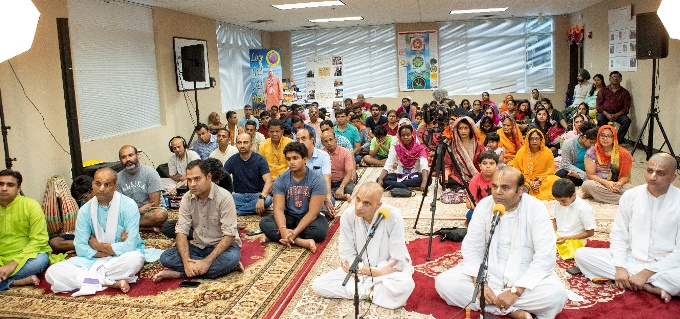This year was no different. His Divine Grace Shrila Bhakti Swarup Tirtha Goswami Maharaj, during his tour, visited Atlanta and gave lectures on the Shrimad Bhagavatam between July 15 to August 18, 2019 at the new GVA Center, 4040 Old Milton Parkway, Alpharetta, GA from the 7th and 11th Cantos, and covered the pastimes of the demon king Hiranyakasipu and his devotee son, Shri Prahlad Maharaja, and conversation between Lord Shri Krishna and Shri Uddhava widely known as “Uddhava Gita.”