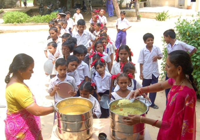 Children in a village classroom supported by Surya's Miles for Meals program.