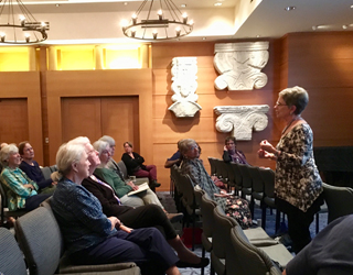 (Left and below) Dr. Joyce Flueckiger, Professor of Religion at Emory University, speaking at the Carlos Museum on "Vishnu and His 10 Avatars." (Photo: Aruna Padmanabhan)