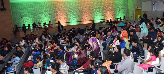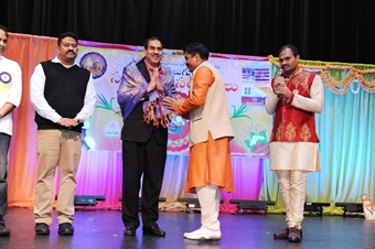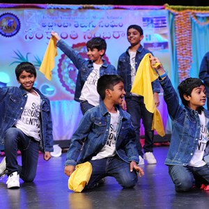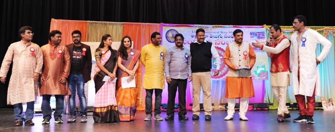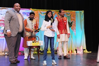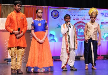 The onstage event started at 4:30 pm with welcome note by Cultural Secretary Subbarao Maddali. Officers of the Executive Committee and Board were present at the Jyothi Prajwalana. The very first item was a musical program by five visually disabled artists singing and playing their instruments, which was well received by the audience. Several mixed cultural activities were performed by young kids, teens, and adults, with classical and movie medley dances. Telugu story readings, mono action with famous NTR movie Daana Veera Soora Karna dialogues, and humorous skits all thoroughly entertained the audience. Hilarious anchoring by emcee Sridhar Potabattula delighted all ages.