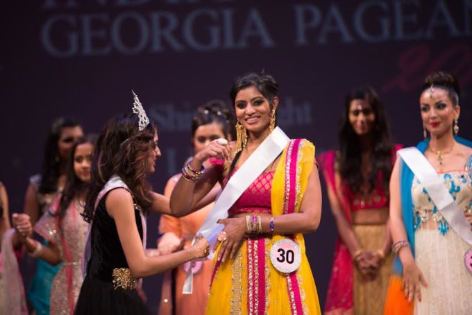 Arya Ramprasad (Miss Teen India - Georgia 2015) putting sash for