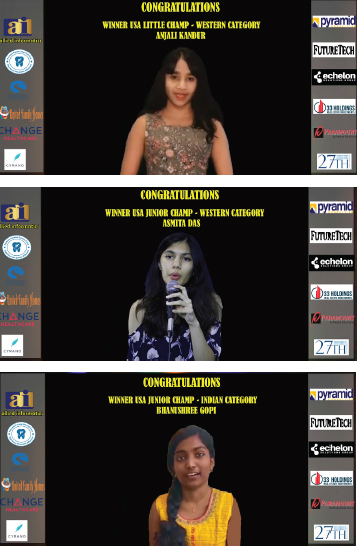 Winners were announced in 3 groups: U.S., India and International for each of the Little Champ, Teen Champ and Super Champ categories as well as the Indian and Western categories. People poured their votes for their near and dear ones for the Public Choice awards which was a separate category. Contestants had the audience spellbound with their singing. It was followed by stories of the difference Vibha is making on the ground. The well-known singers Kartik Raman, Hema Nayak and Bhavya Pandit entertained during the finale.